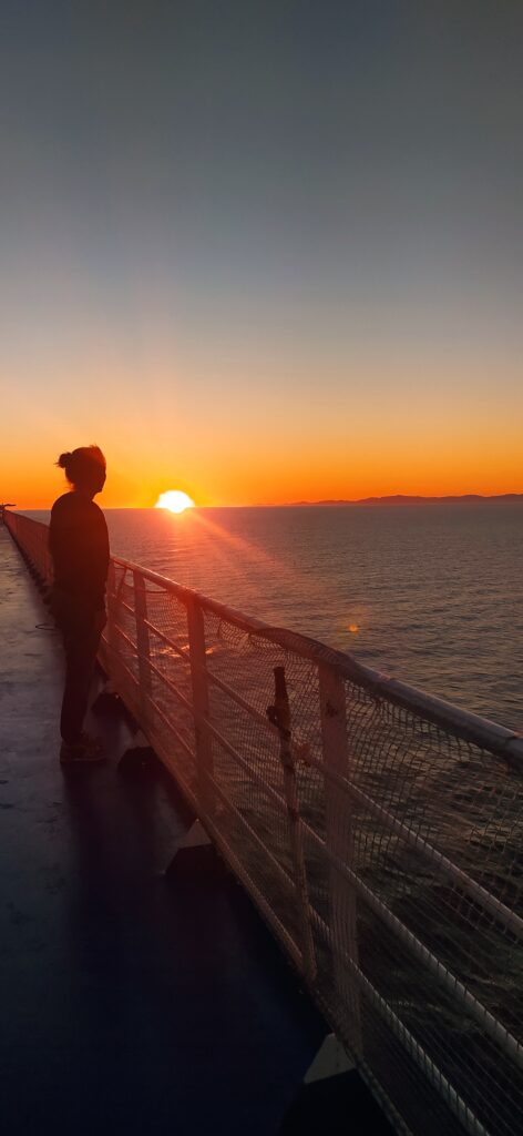 Hier stond ik op de boot onderweg van Spanje naar Italië op weg naar het tweede deel van onze reis van ruim 6 maanden met ons gezin in een omgebouwde brandweerwagen. Een droom die we lang hadden die we hebben waar gemaakt.